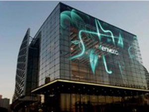 (2)不占用空間,主板厚度僅10mm,顯示屏屏體重量僅12Kg/m2,無需改變建筑結(jié)構(gòu),直接粘貼與玻璃幕墻上 。